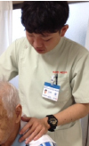 寝たきりの高齢者は外部とのコミュニケーションを強く望んでいます。しかし、言語障害や痴呆により意志の疎通ができずどんどん内面にとじこもって行く傾向があります。我々の治療は直接からだに触れて行います。それによる安心感、そして心地よい刺激により意欲を高めその人らしさの回復につなげます。またターミナルケアの方の精神的援助も我々は行っています。
